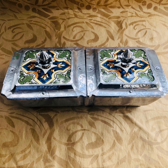 Extremely Rare Cellini Craft Handwrought Tiled Double Server